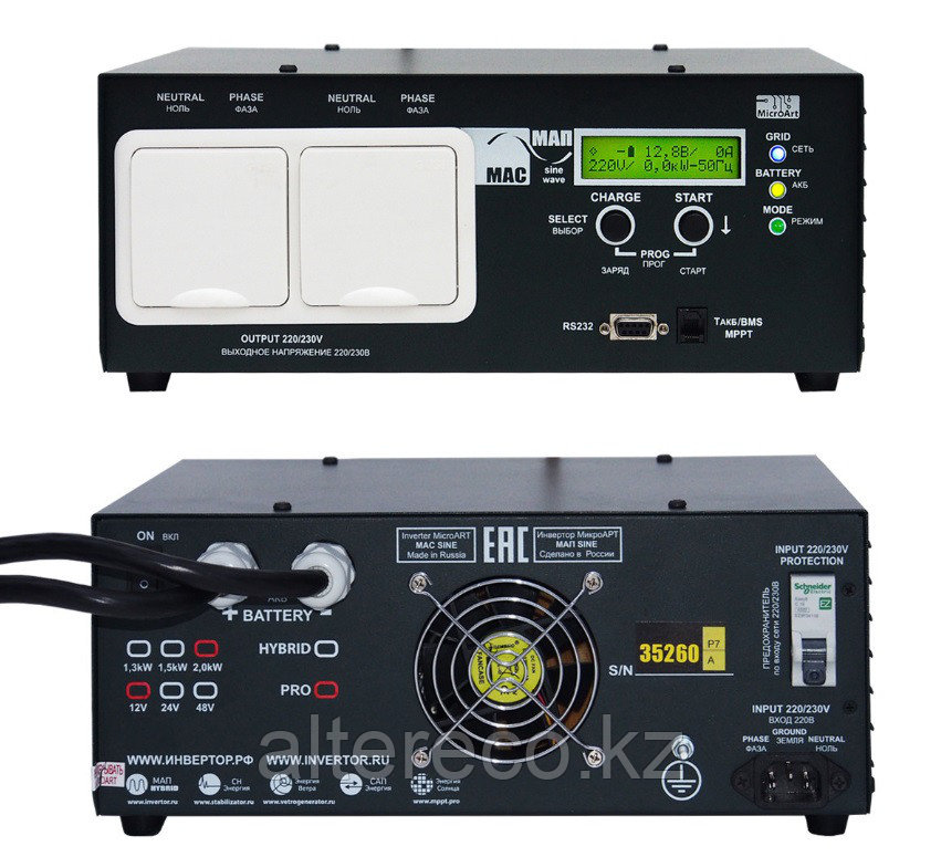 - Отображение напряжений, токов, режимов работы и др. на ЖК экране.